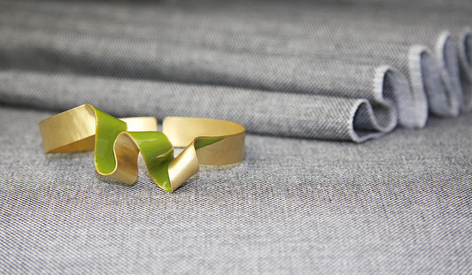 Bracelet W Bow 24ct gold plated matte hand enamel option Red, Green and Blue