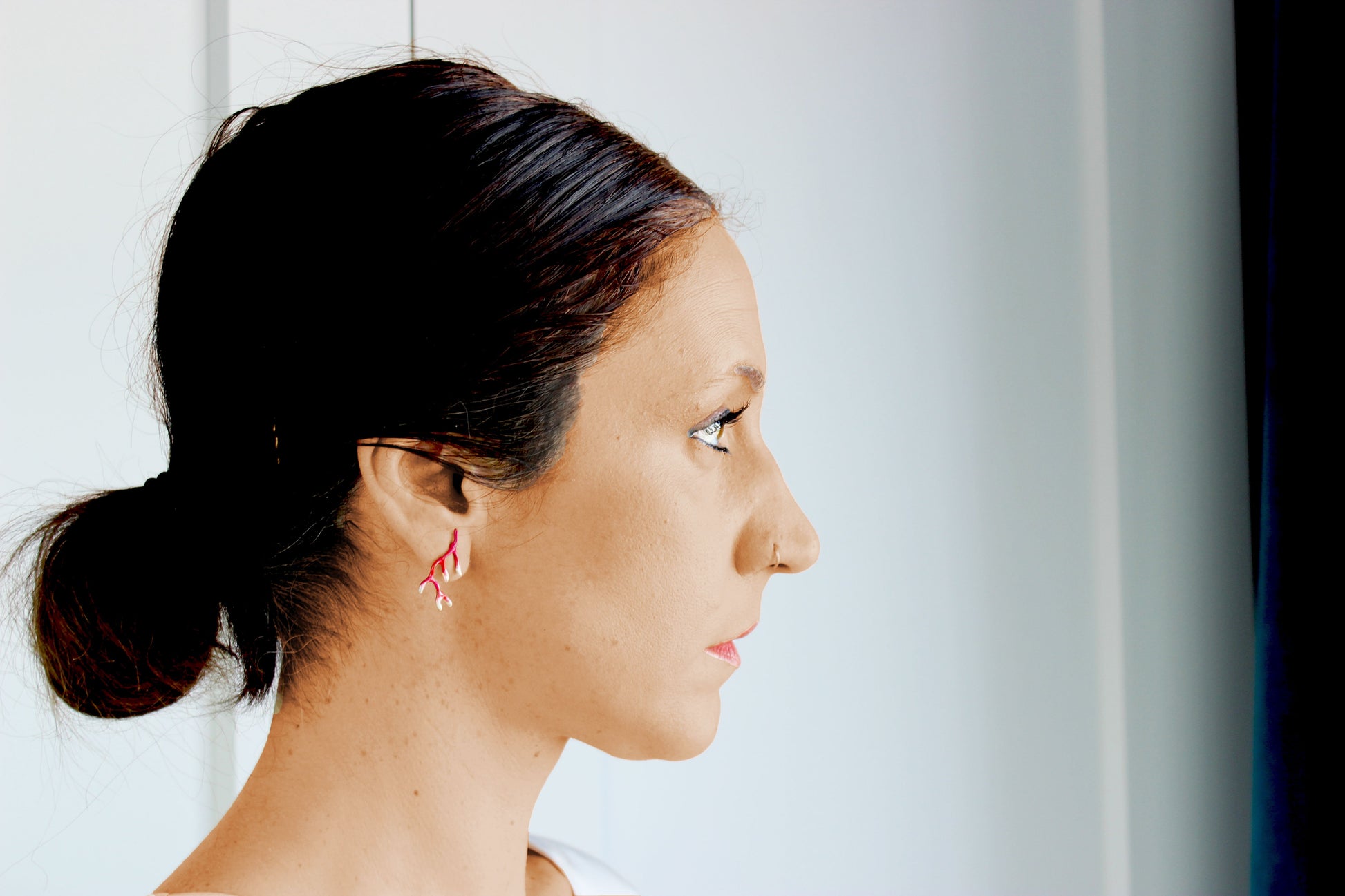 Pendientes coral baño de oro de 24k con lacado hipoalergénico esmaltado en coral. Acabado mate