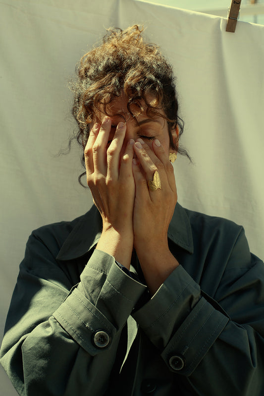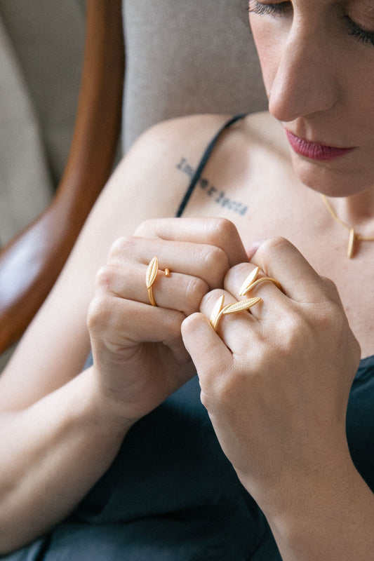 Bague réglable en or mat Double Feuille plaquée or 24 carats