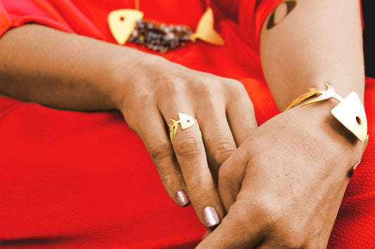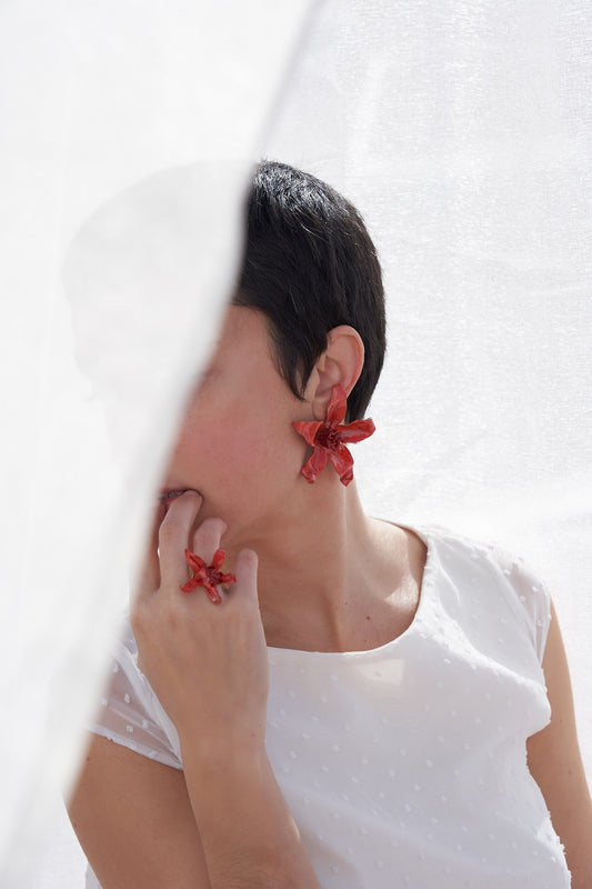Anillo Coral baño oro 24ct y esmaltado a mano