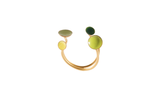 Bague ronde plaquée or avec émail à la main de différentes couleurs