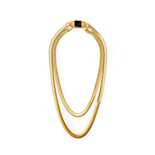 Gargantilla doble fina Jackie dorado mate con cierre esmaltado en verde o negro