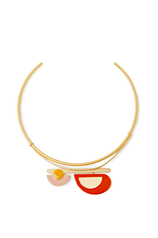 Pad choker plaqué or 24 carats émail main Rouge