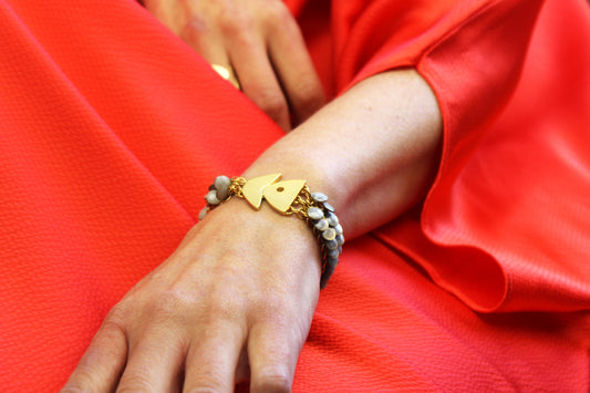 Pulsera Jackie Med dorado mate ágatas multicolor o Blanco y negro