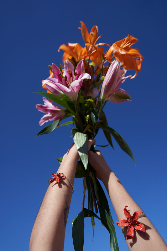 Grand bracelet Fleurs en or mat Plaqué or 24 carats