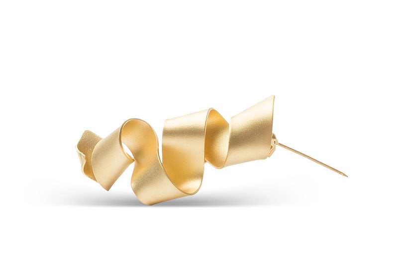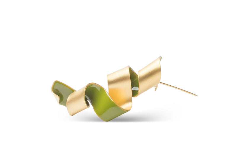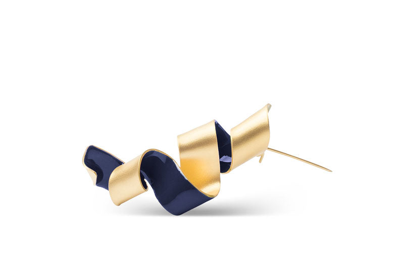 Broche W Bow 24ct plaqué or mat émail à la main option Rouge, Bleu et Vert
