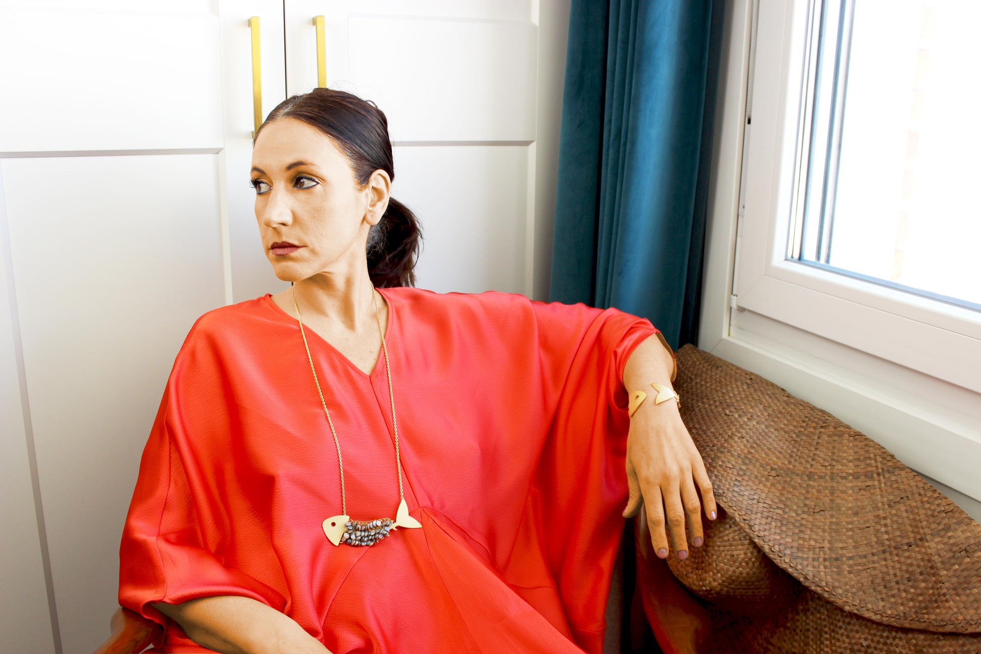 Collar Raspa Grande con Vestido de quita y pon, baño de oro de 24k con lacado hipoalergénico. Acabado mate