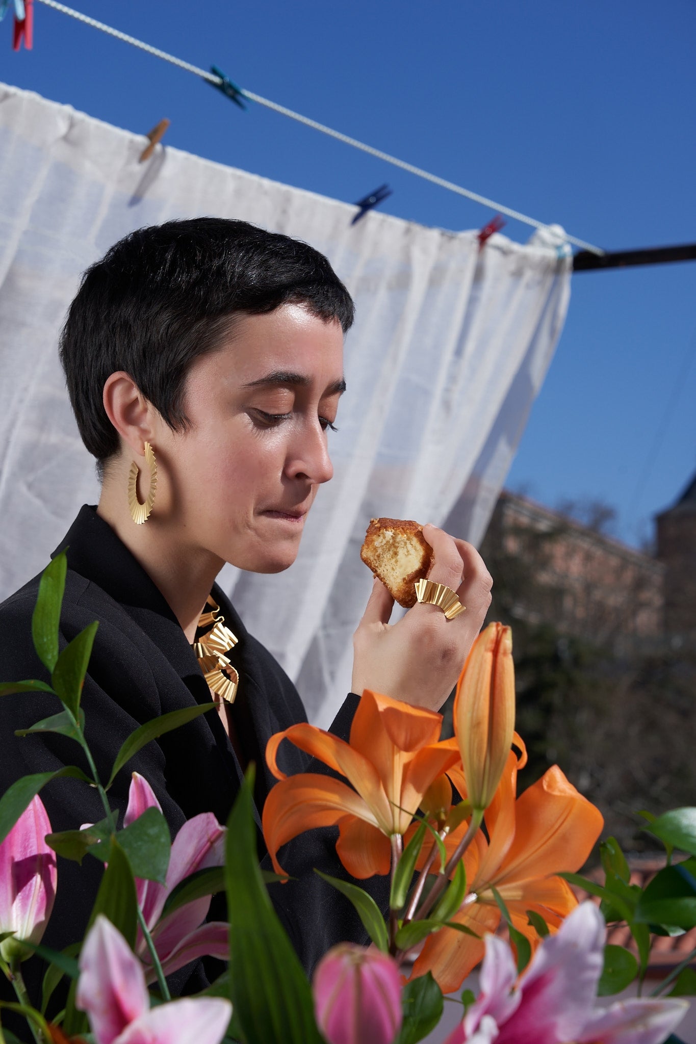 Boucles d'oreilles ouvertes légères en or mat.