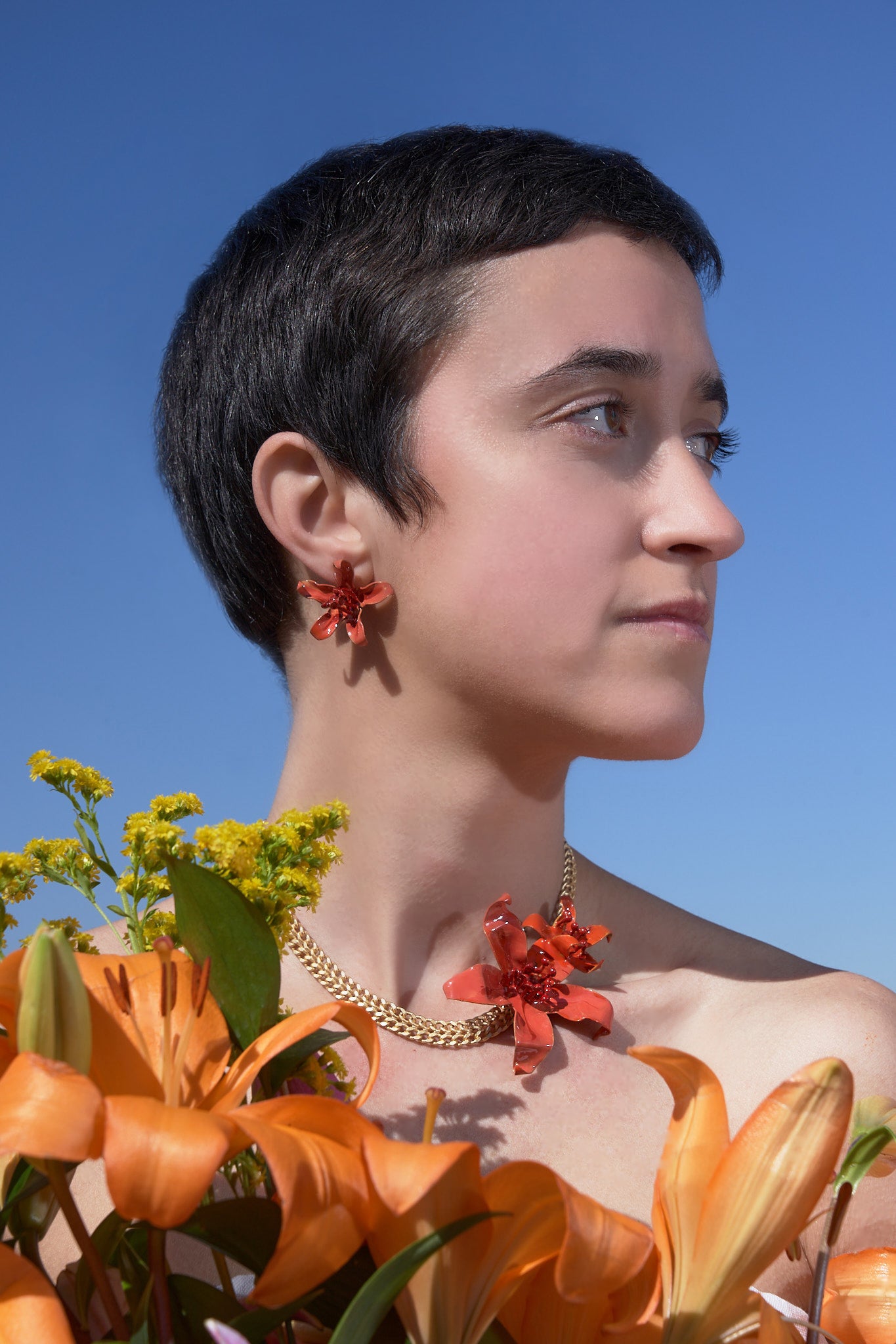 Boucles d'oreilles Petites Fleurs en or mat ou émail à froid.