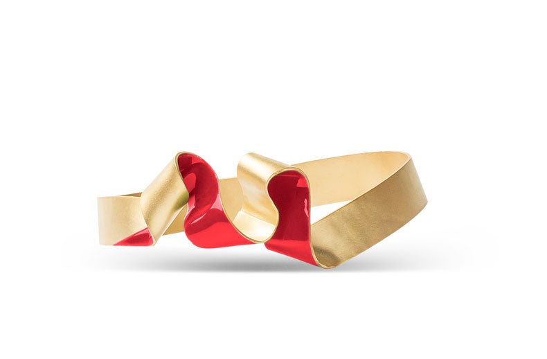 Bracelet W Bow Plaqué Or 24 carats émail mat main option Rouge, Vert et Bleu