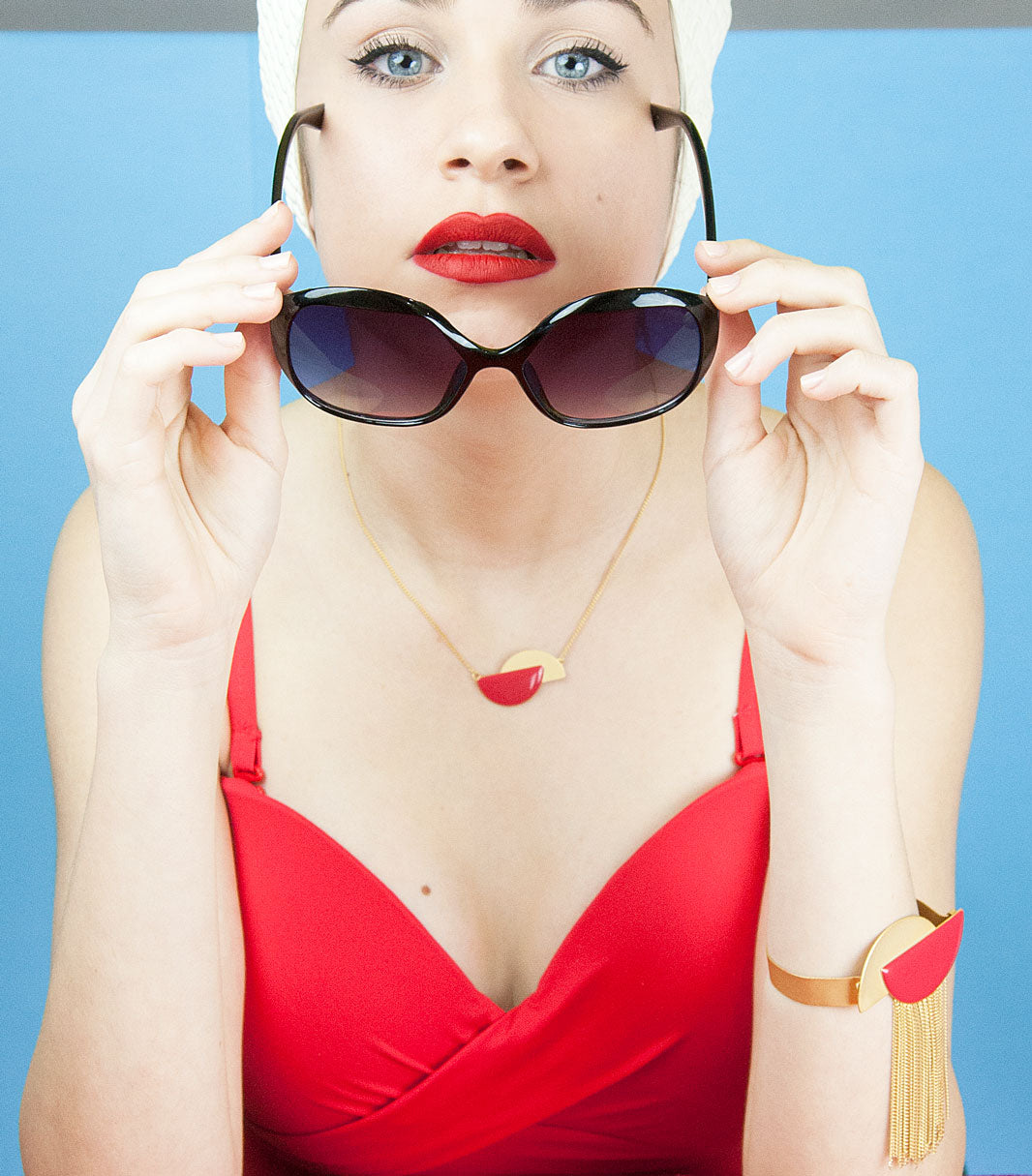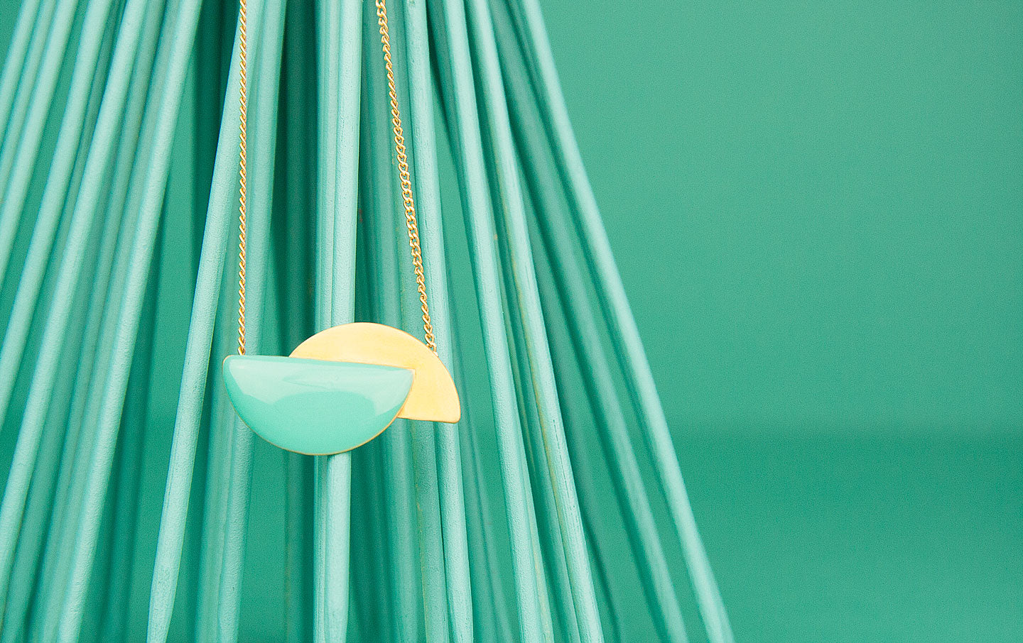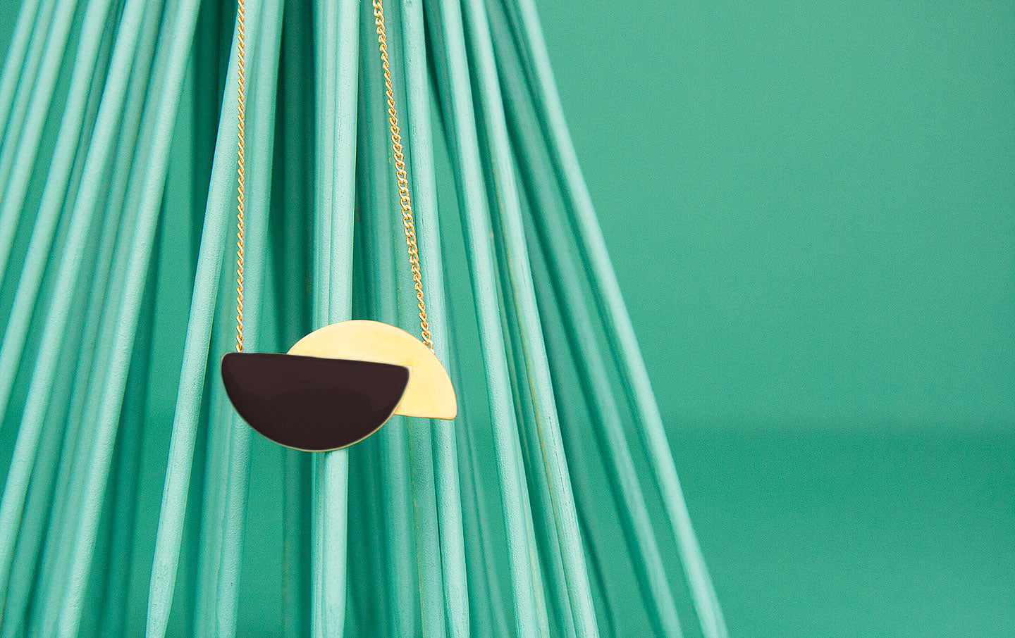 Semicircle necklace. Enameled in White, Red, Black or turquoise.