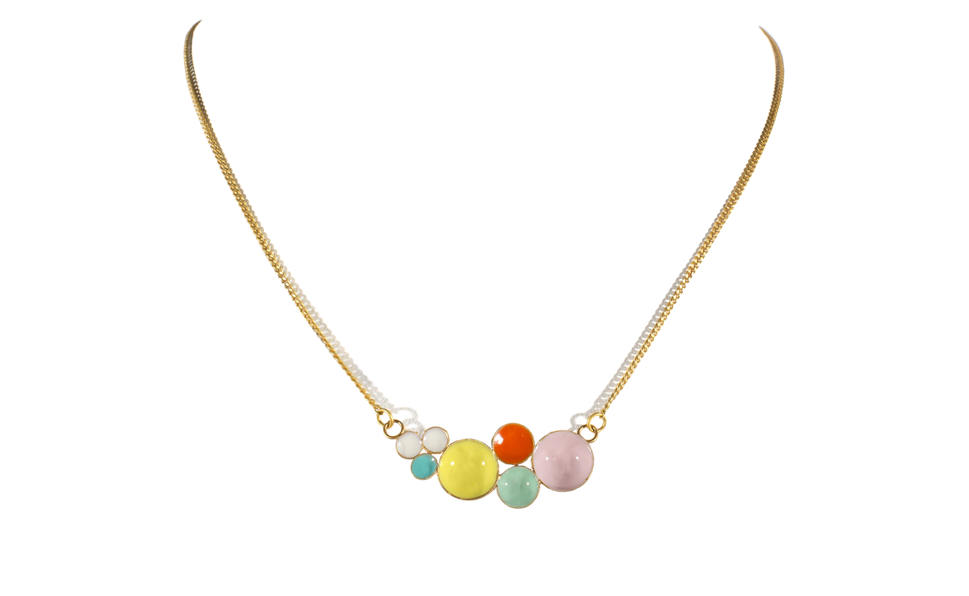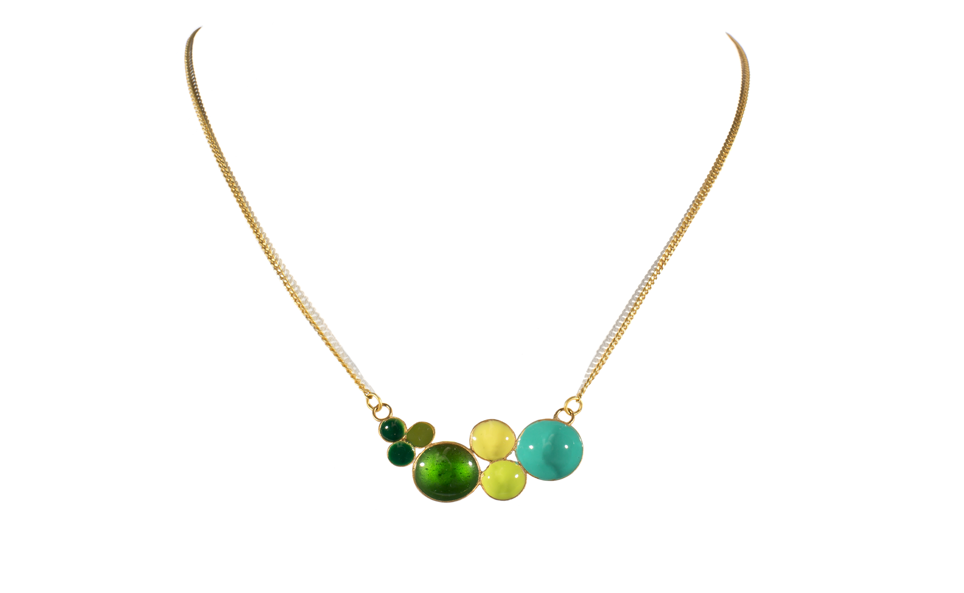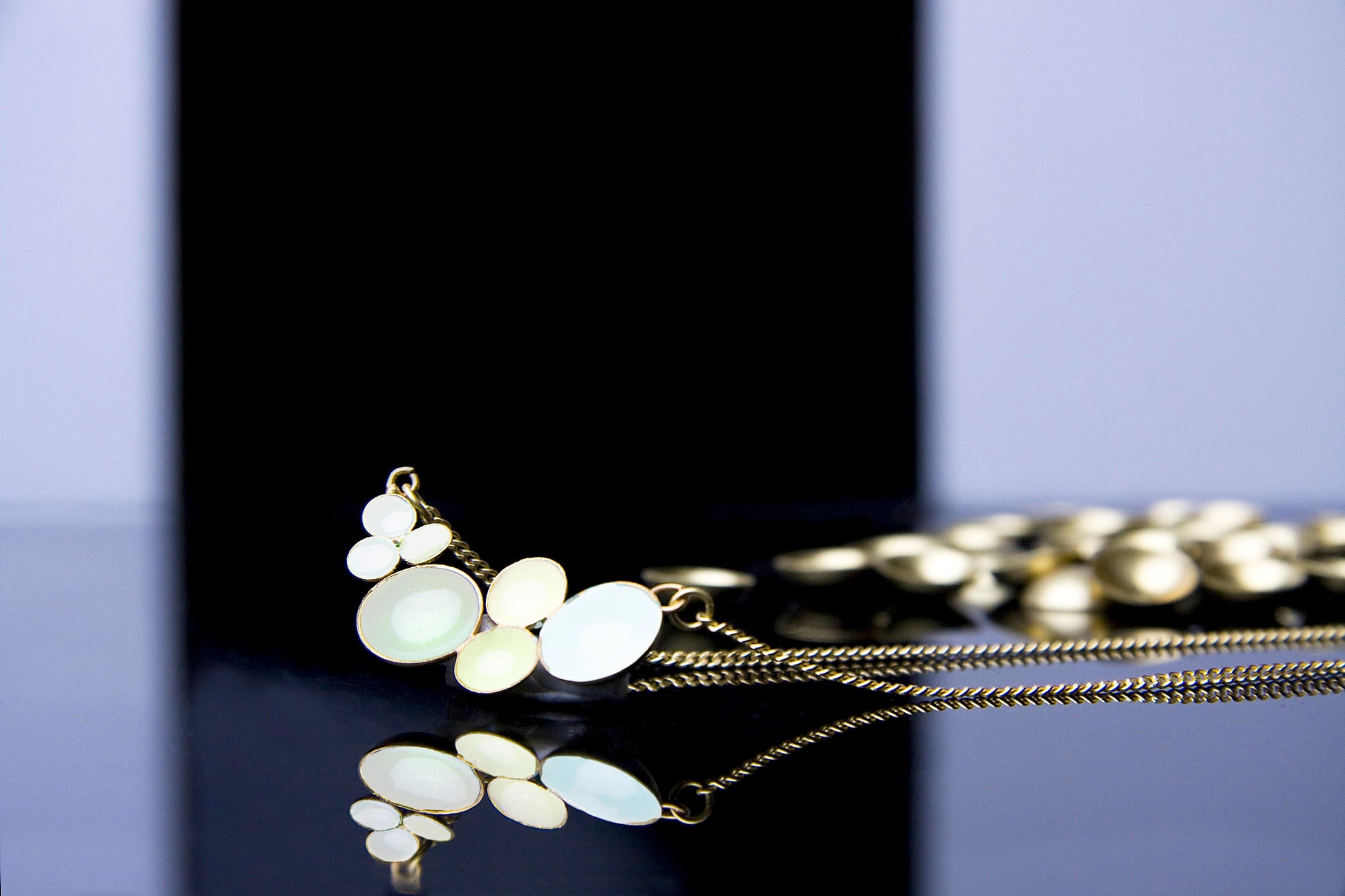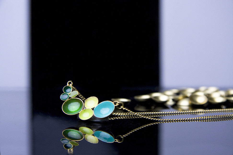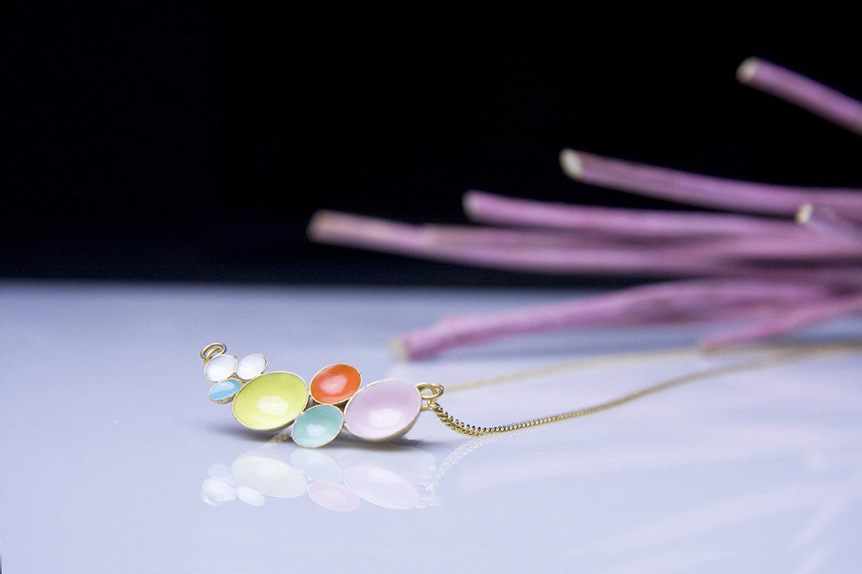Organic shape necklace, hand enamel. Copper alloy, gold plated 24 carats and hypoallergenic cover.