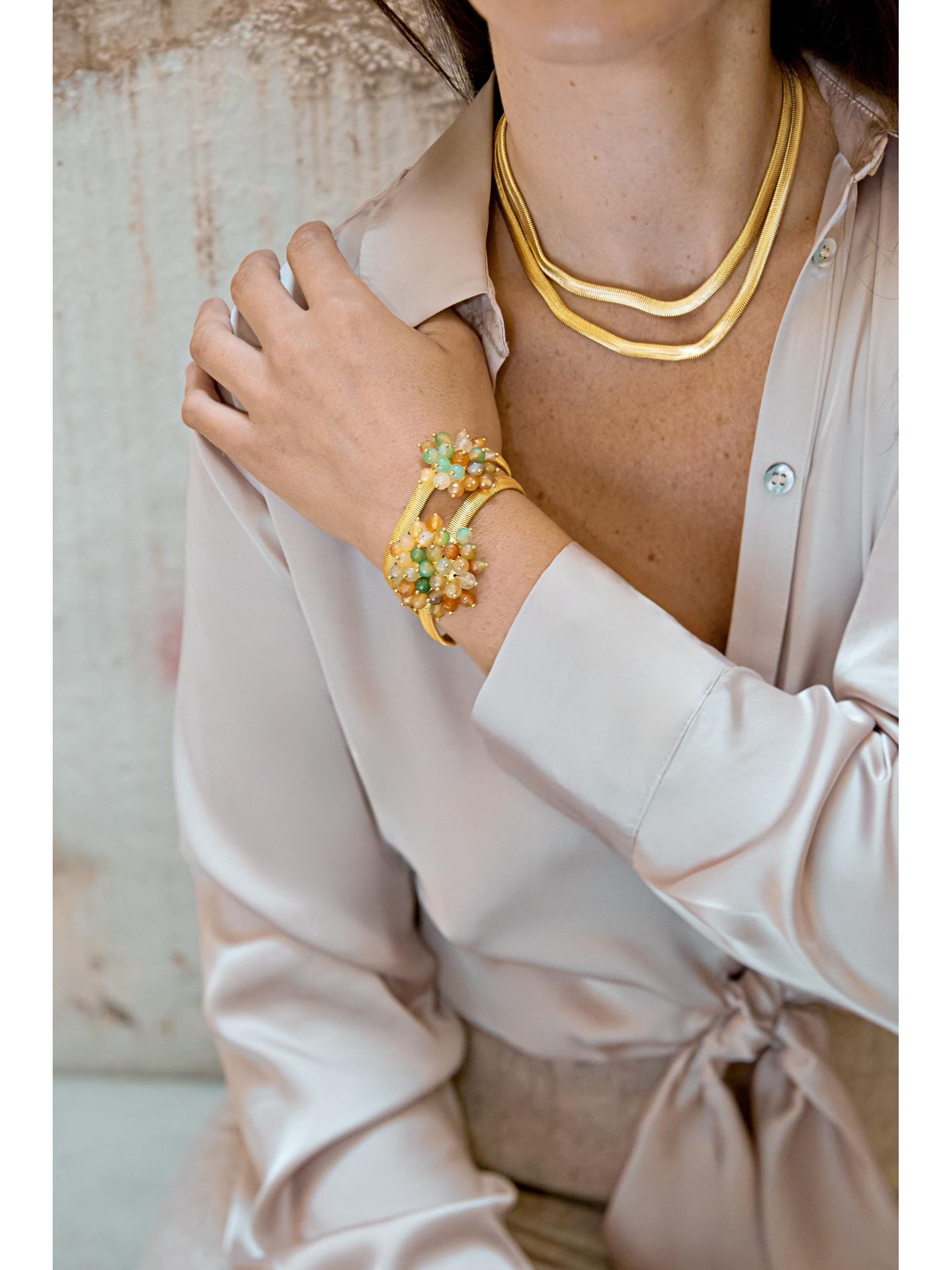 Gargantilla sencilla con cadena doble fina y cierre esmaltado en negro o verde. Acabado baño de oro 24ct mate y lacado hipoalergénico.