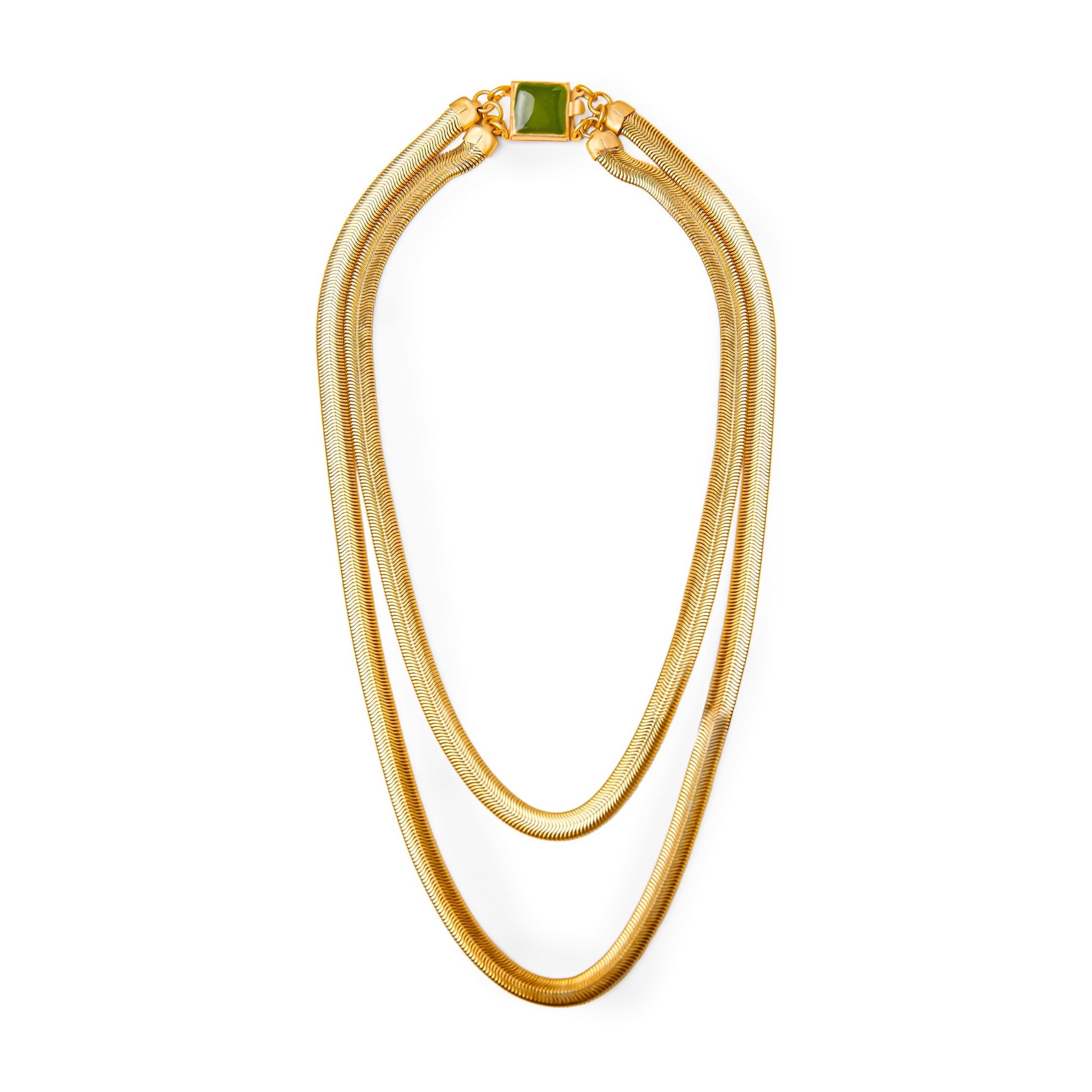 Gargantilla doble fina Jackie dorado mate con cierre esmaltado en verde o negro